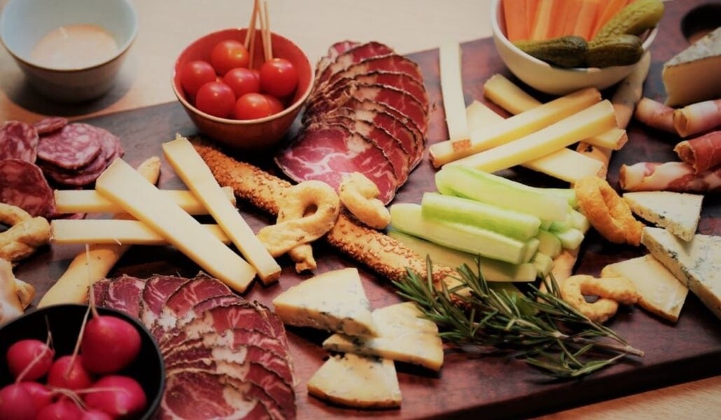 Plateau "Apéro" (Olives, saucisson, fromage, humus...) pour deux : 15€